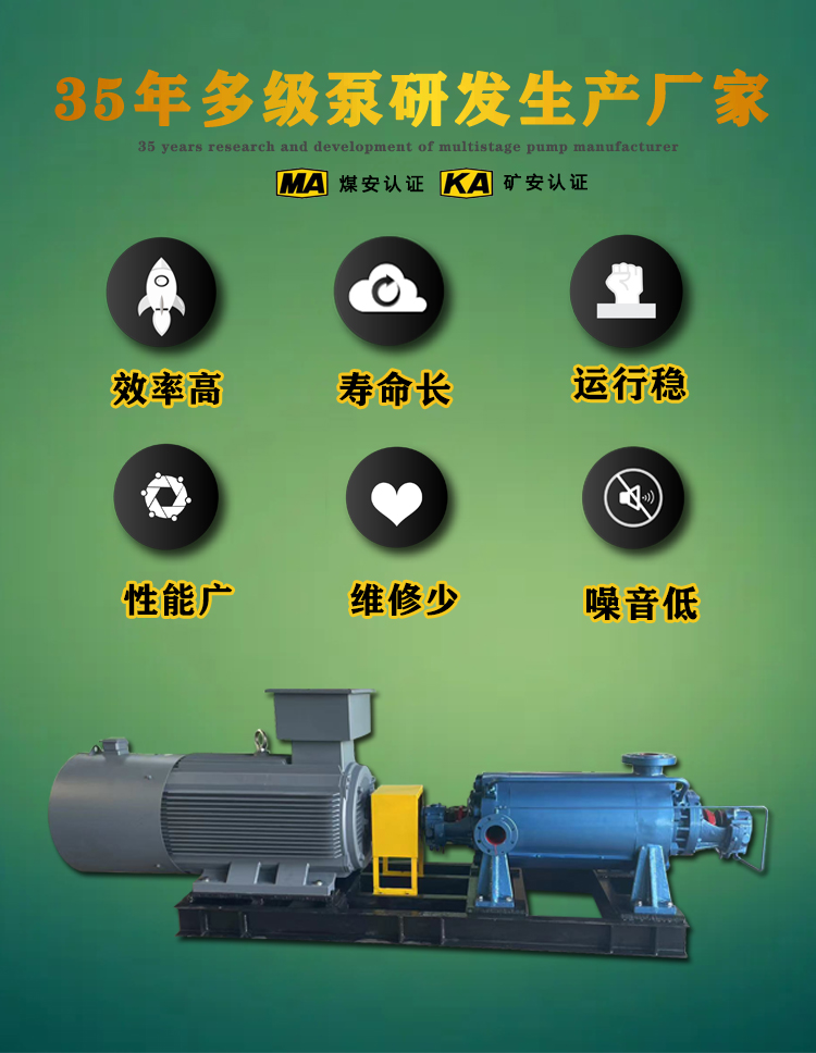 该类型的矿用多级离心泵是用于供输送固体颗粒含量不大于1.5%的中性矿水(粒度小于0.5毫米)及类似的其他污水,被输送介质的温度不大于80℃,适用于钢铁厂、矿山排水、污水输送等场合。