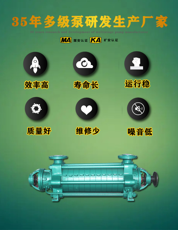 产品简介:DG锅炉给水泵: DG型多级锅炉给水泵为卧式多级单吸节段式离心泵,适于输送温度不高于150°C的清水,或物理化学性质类似于水的无腐蚀性的液体,广泛用于电厂、冶金、供暖等行业的锅炉给水,最高扬程可达1500米。