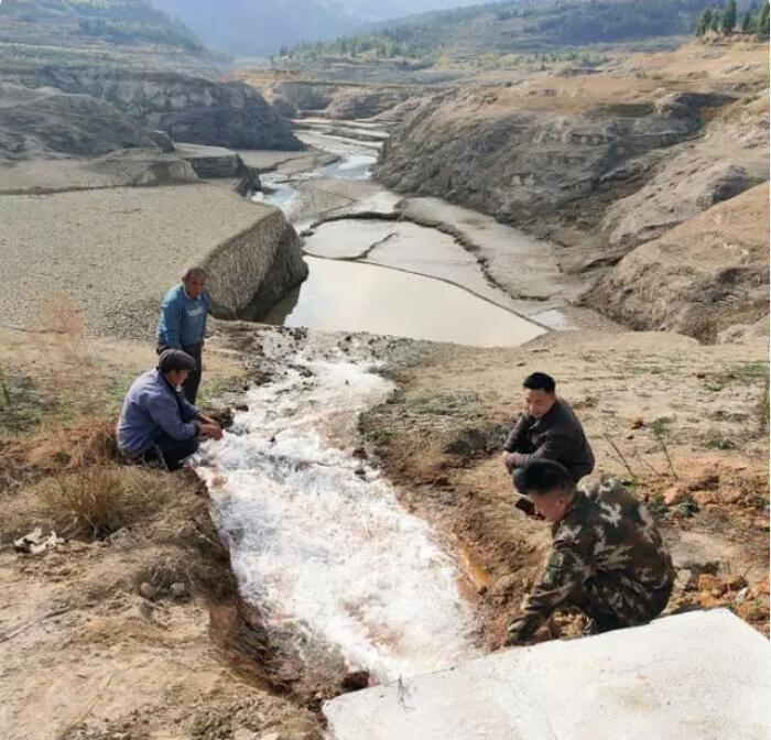 突击队员与时间赛跑,在低洼湿地大峡谷昼夜奋战1080小时,架设管道3.8公里、扬程220米,随着取水水泵机组通电,吊洞水库引水工程正式投入使用,水流顺利经过主输水管道,成功输送至乌坝河水库。至此,枯竭的水库有了充足的水源补充。