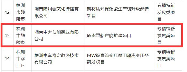 近日,湖南省工业和信息化厅公布了关于2023年湖南省中小企业发展专项资金拟支持项目的公示,湖南中大节能泵业有限公司的取水泵船产能扩建项目获得了专精特新发展类项目资金支持。