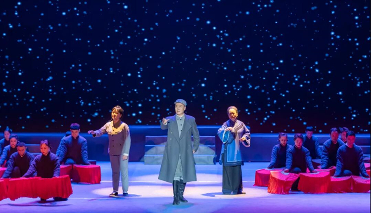 泛黄的信纸、斑驳的字迹,这样的舞台背景瞬间将现场观众带到战火纷飞的革命年代。100多分钟时间里,“太行为证”“碧血丹心”等六个篇章陆续演绎,战场硝烟、延安牵挂与醴陵守望三重时空交织呈现,革命先辈的铁血柔情与家国大义跃然眼前。