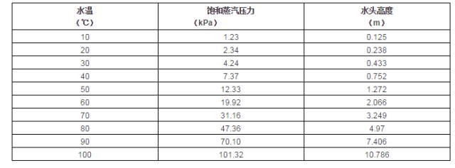 不同温度时水的饱和蒸汽压对应水头高度见下表: