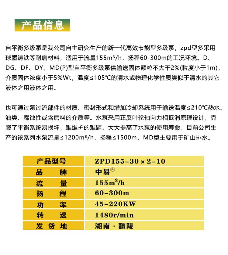 • ZPD155-30×(2-10)自平衡多级离心泵