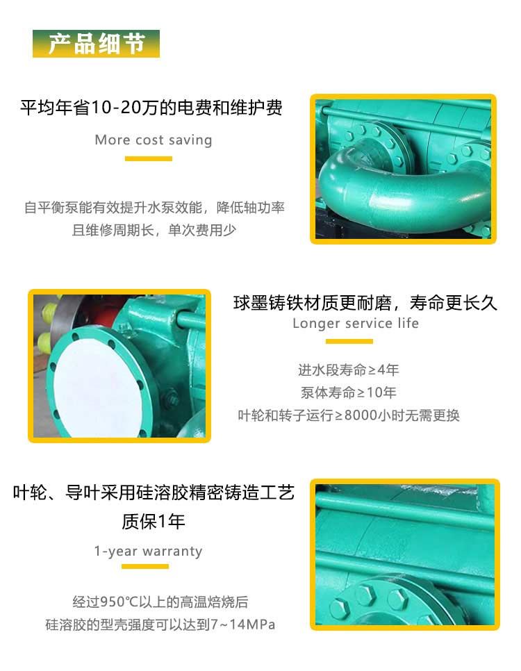 产品简介:自平衡多级离心泵: 自平衡多级泵是为满足用户需要,加速高压多级泵技术发展,采用国外同类产品的先进技术结合本公司多年设计经验,使用国家推荐的高效节能产品的水力模型,依据API610标准研究开发的高效高压多级离心泵产品;在行业内居于技术先进地位。具有高效区宽、性能范围广、汽蚀性能好、运转安全和..